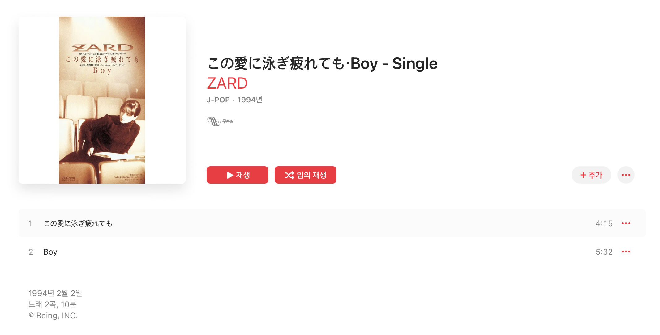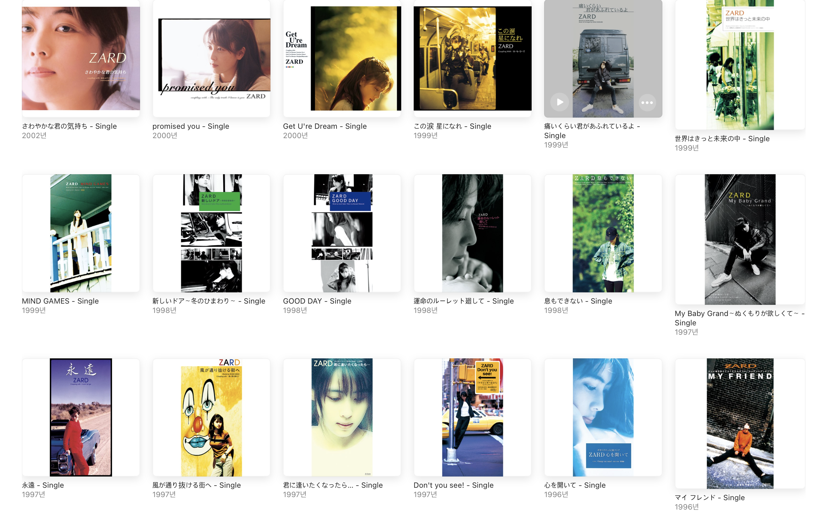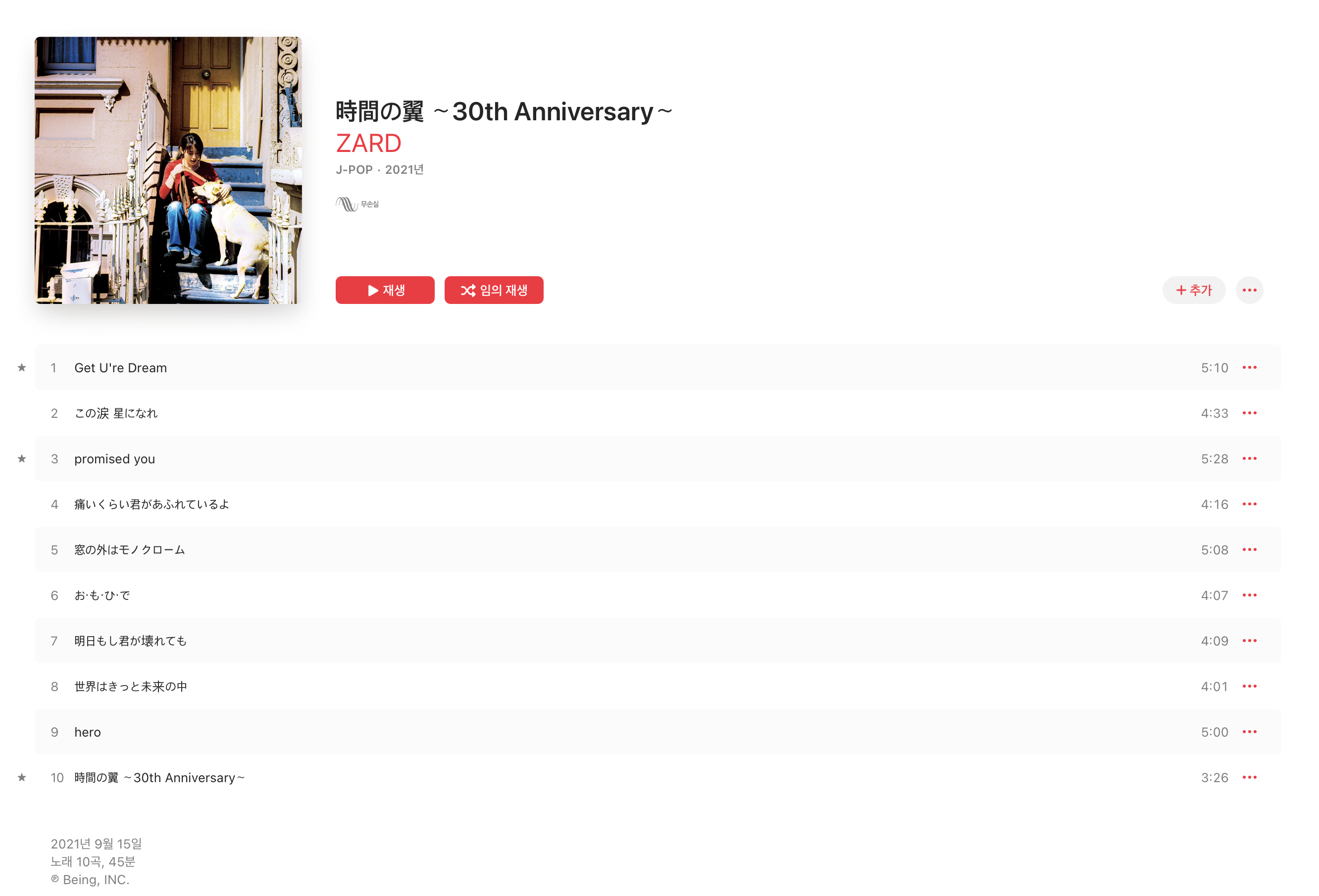 오늘은 애플 뮤직에 올라온 자드(ZARD) 앨범을 리뷰해보고 어떤 구성으로 되어 있는지 살펴보려 합니다.