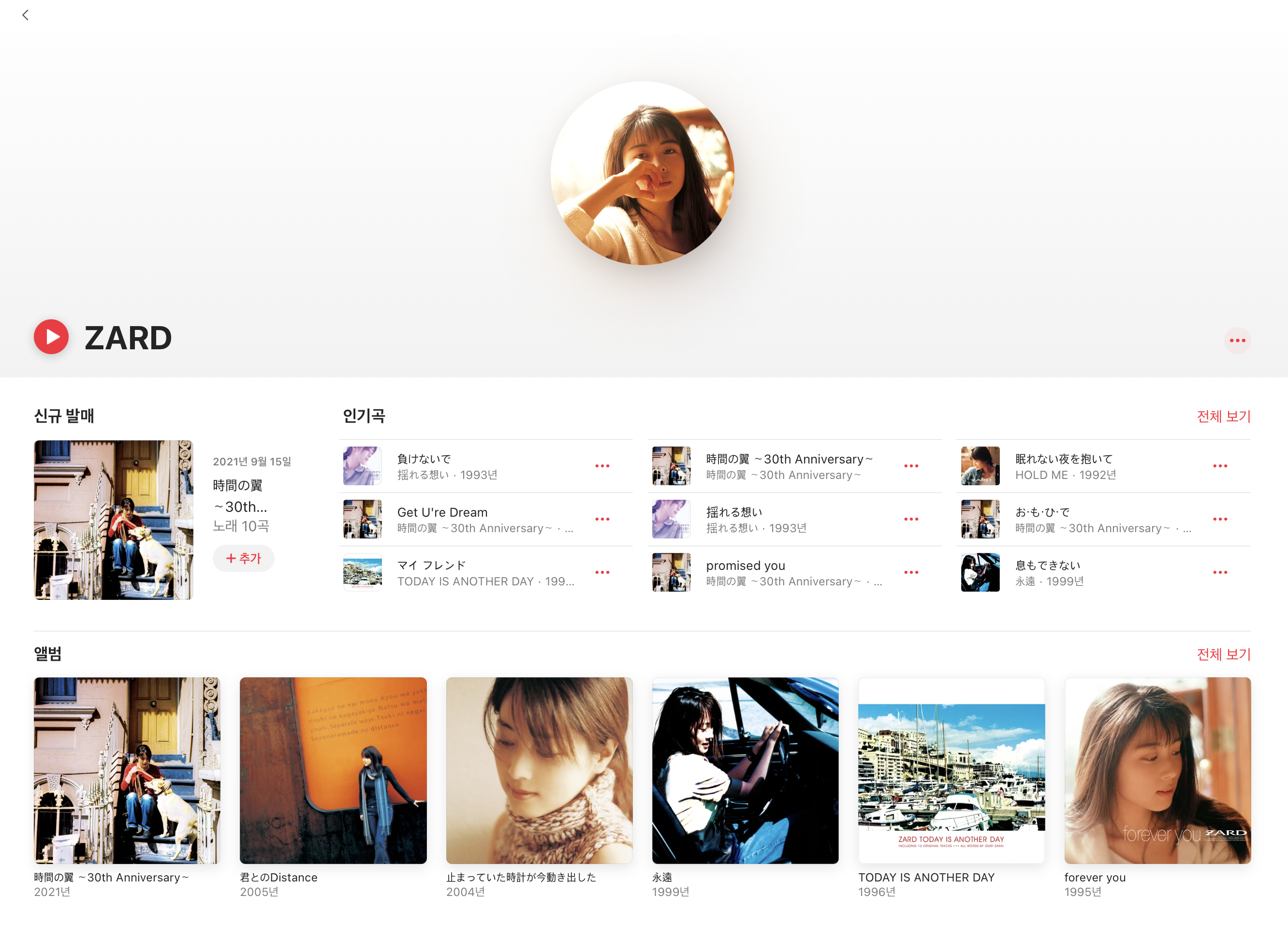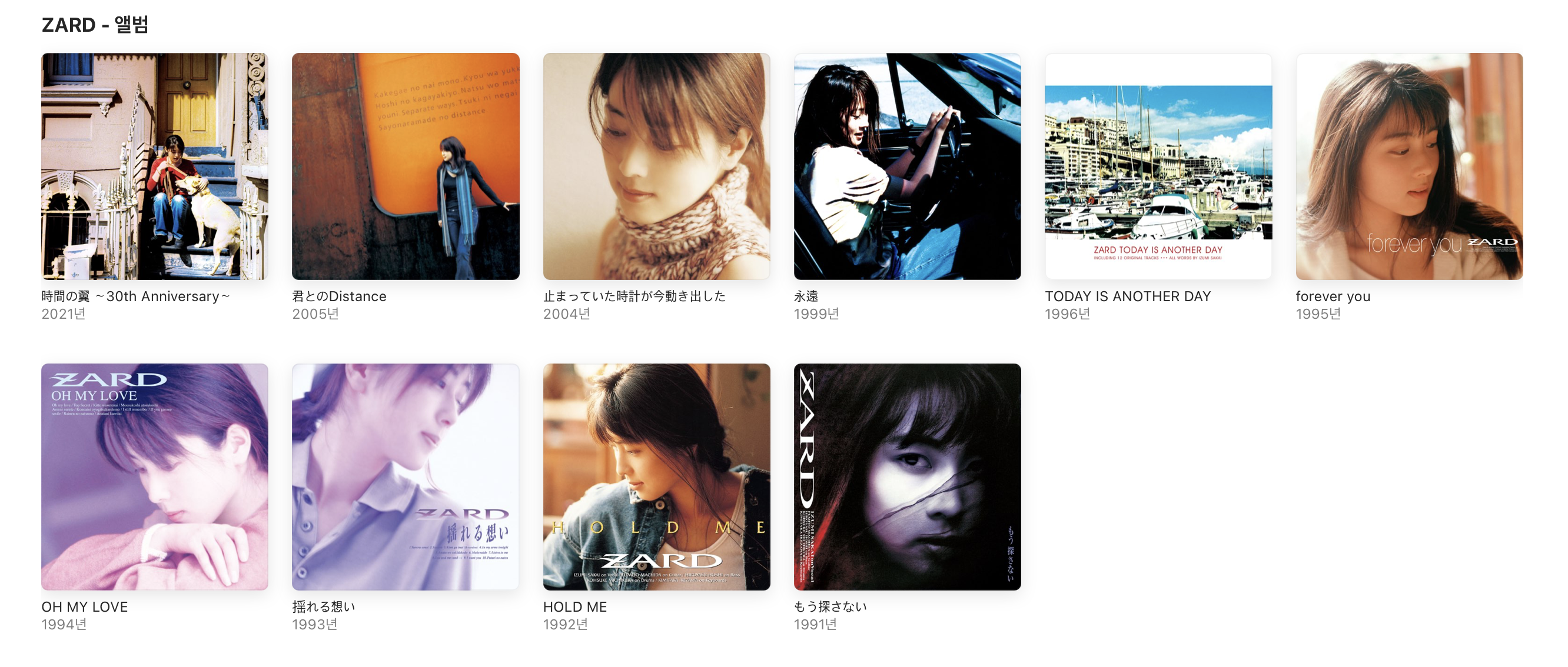 오늘은 애플 뮤직에서 스트리밍 서비스를 하고 있는 자드 (ZARD) 앨범을 리뷰했습니다.