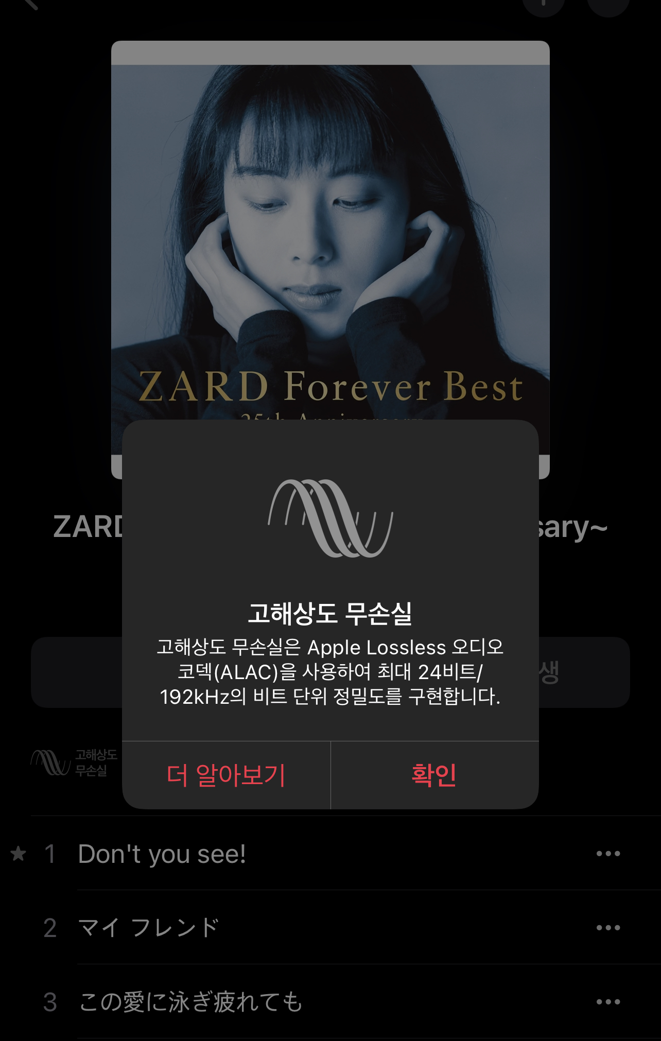 일부 앨범 (25주년 기념 ZARD FOREVER BEST)의 경우는 최대 24비트/192kHz로 고해상도 무손실로 서비스 되는 것을 확인했습니다.