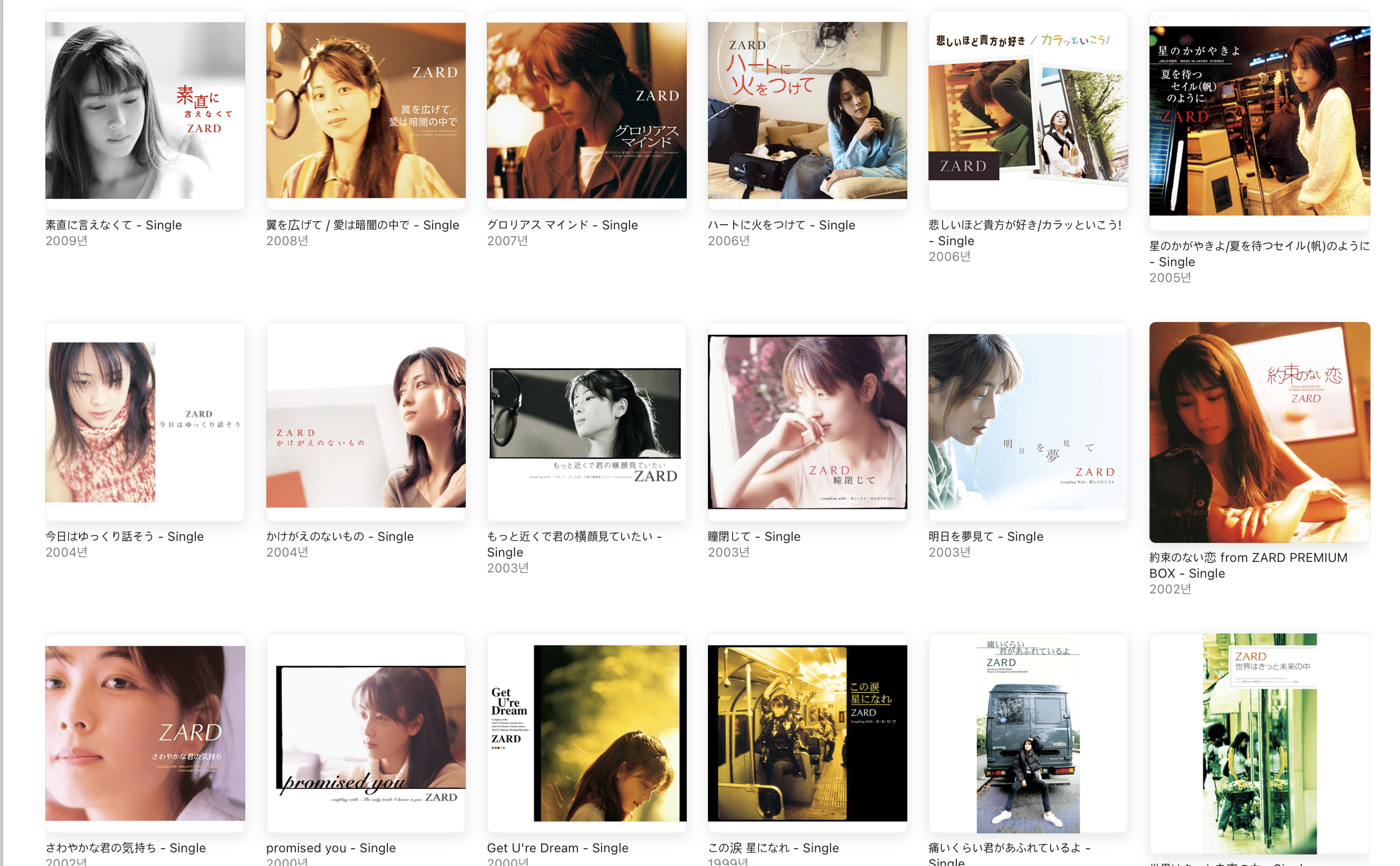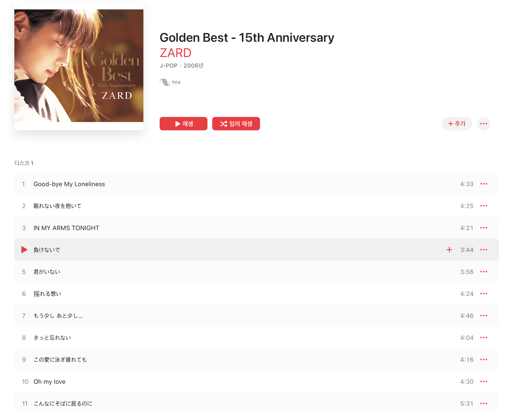 각 링크를 통해 애플 뮤직에서 제공되는 자드(ZARD)의 플레이리스트 곡들을 확인할 수 있습니다.