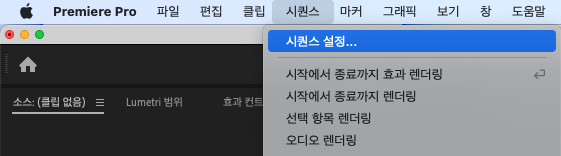 상단 메뉴 [시퀀스] - [시퀀스 설정]을 클릭합니다.