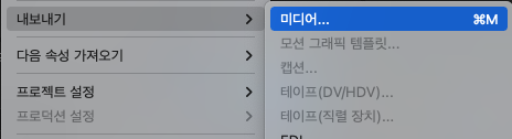 상단 메뉴 [파일] - [내보내기] - [미디어]를 클릭합니다.