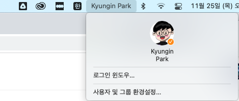 ㄴ메뉴 막대에서 이름을 클릭하면 아래 그림과 같이 사용자를 전환할 수 있는 창이 나타납니다.