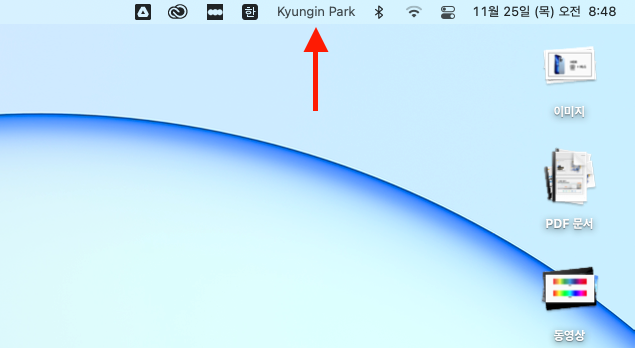 맥OS 메뉴막대에 내 이름 새겨넣기