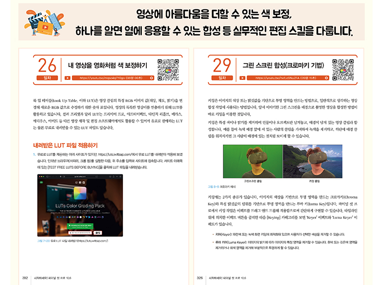 색 보정이나 크로마키 등의 실무적인 편집 스킬을 다룹니다.