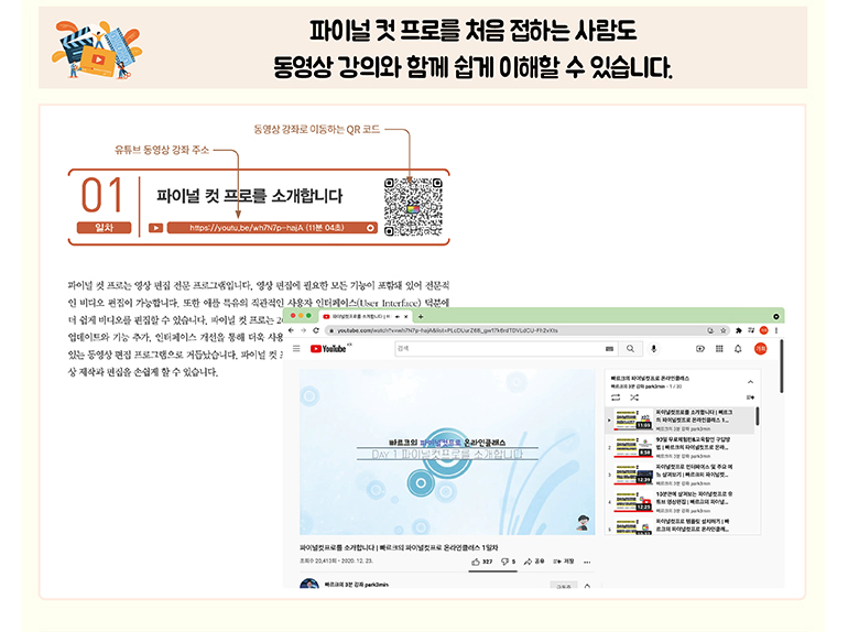 각 차시별 QR코드를 통해 유튜브 동영상 강좌를 시청할 수 있습니다.