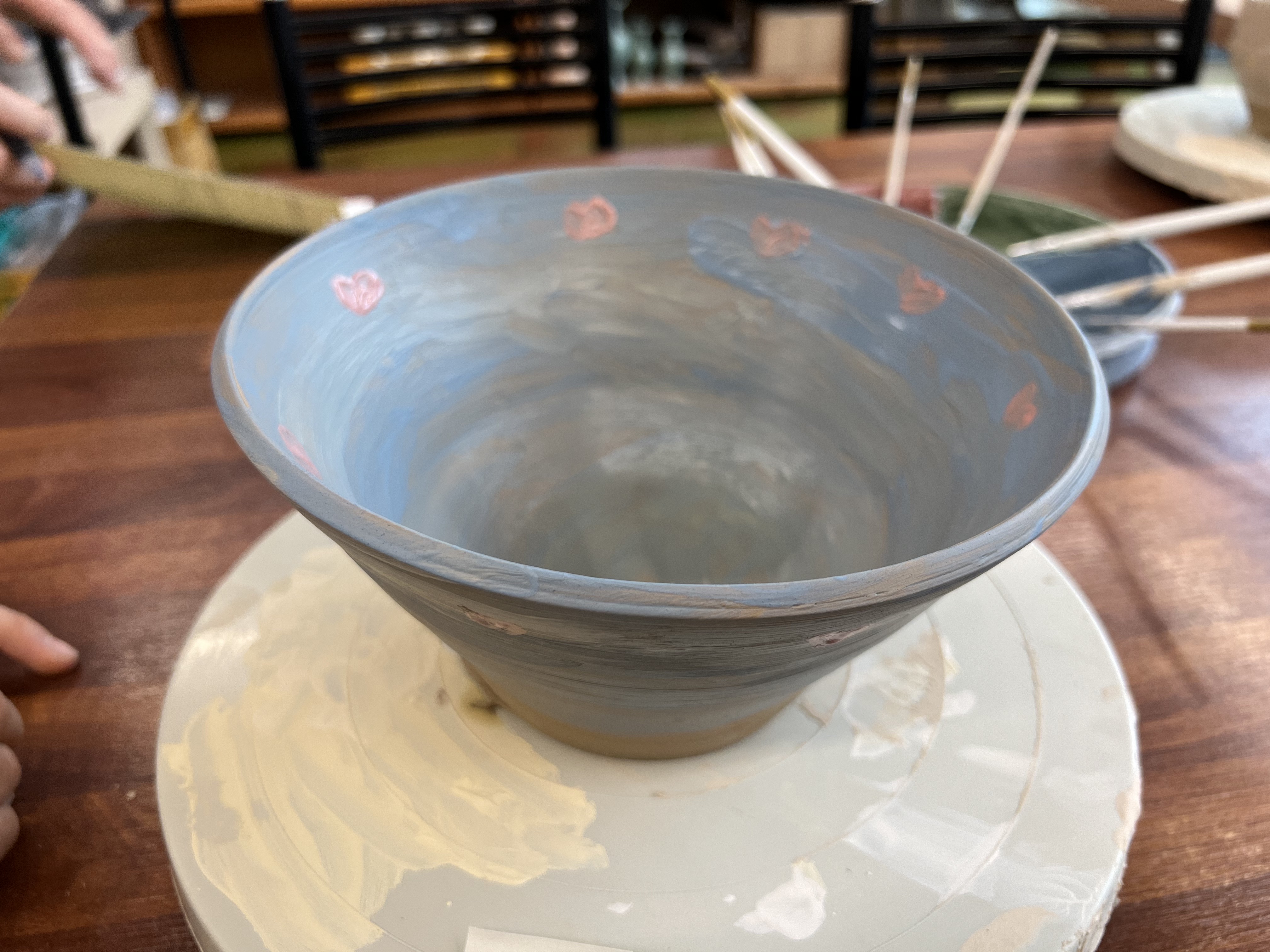 물레가 빙글빙글 돌아가면서 손가락에 가볍게 힘을 주어도 그릇 모양이 만들어지니 꽤 놀랍더라구요.