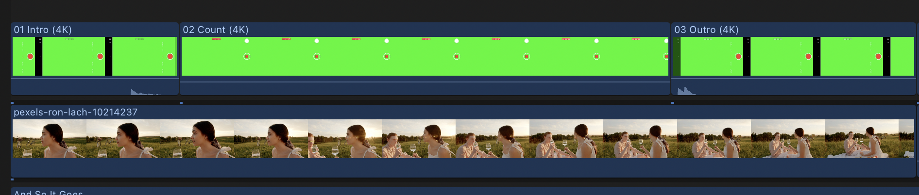 영상 편집프로그램에서 이 파일을 불러오신 후 타임라인에 파일을 아래 그림과 같이 배치하면 더 좋습니다.