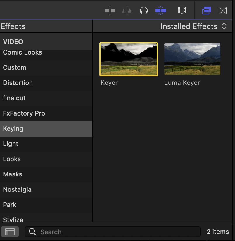 파이널 컷 프로는 [이펙트] - [Keying] - [Keyer] 이펙트를 그대로 그린스크린에서 적용하면 바로 색상을 인식하고 녹색을 제거합니다.