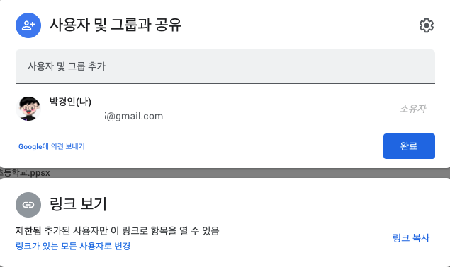 - (기관이름) : Google Workspace 계정에서 활성화 되며 해당 도메인 사용자만 링크로 파일에 접근할 수 있습니다.