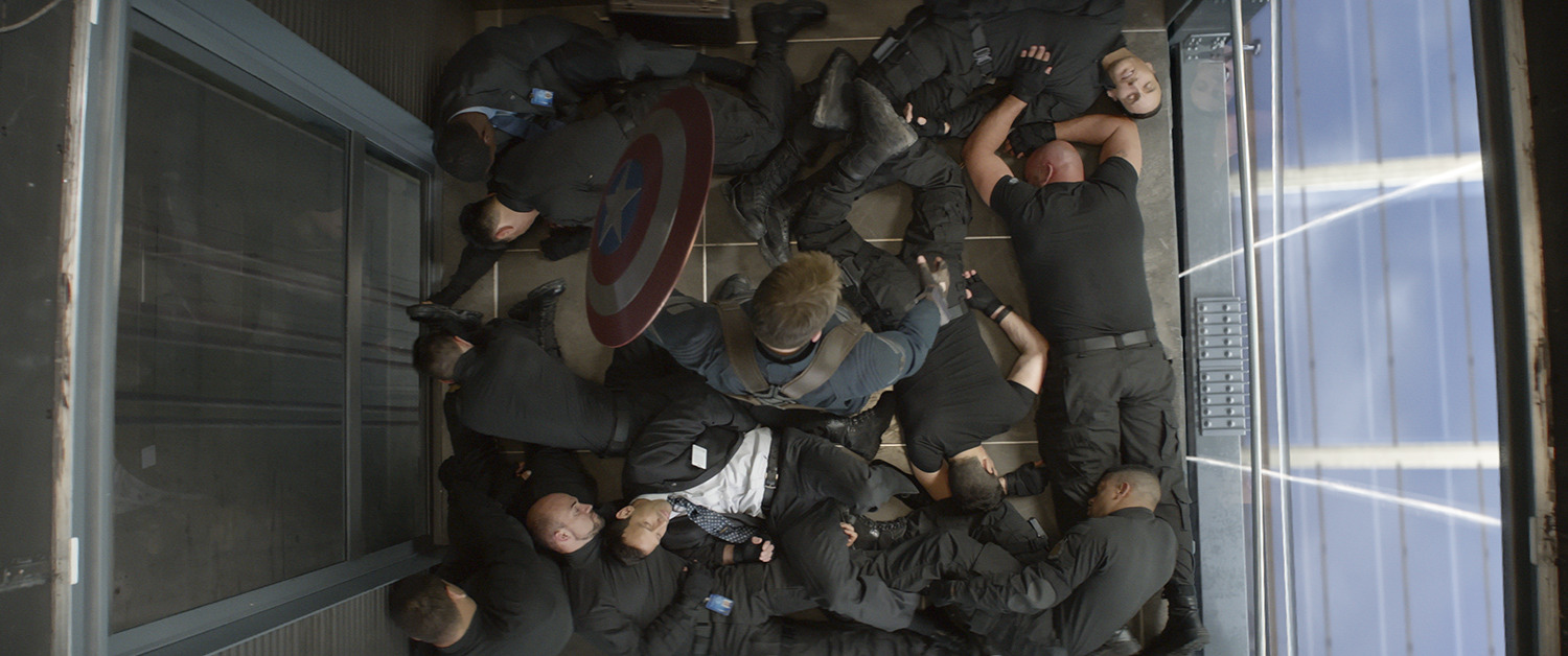 설상가상으로 '닉 퓨리'가 사망 전 만났던 인물이 바로 '캡틴 아메리카'였고 이를 계기로 '닉 퓨리' 사망의 배후 인물로 '캡틴 아메리카'가 지목되면서 쉴드에 쫓기는 신세가 되버립니다. 이 과정에서 캡틴 아메리카: 윈터솔저의 명장면이라 할 수 있으며 마블 영화의 액션씬에서도 손에 꼽을 수 있을 정도의 '엘레베이터 격투 씬'이 나오는데 여담으로 이번 윈터솔저의 첫 촬영 장면이 바로 이 격투씬이었다고 합니다.