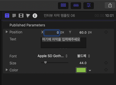 자막 템플릿에서 조정할 수 있는 파라미터(Parameter)로