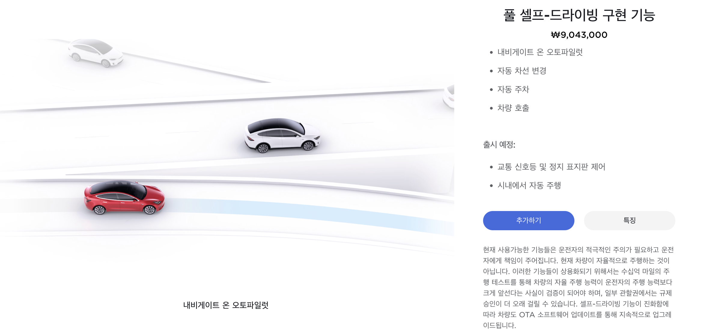이 기능은 테슬라 차량을 구입할 때 기본적으로 장착되어 있는 오토파일럿에