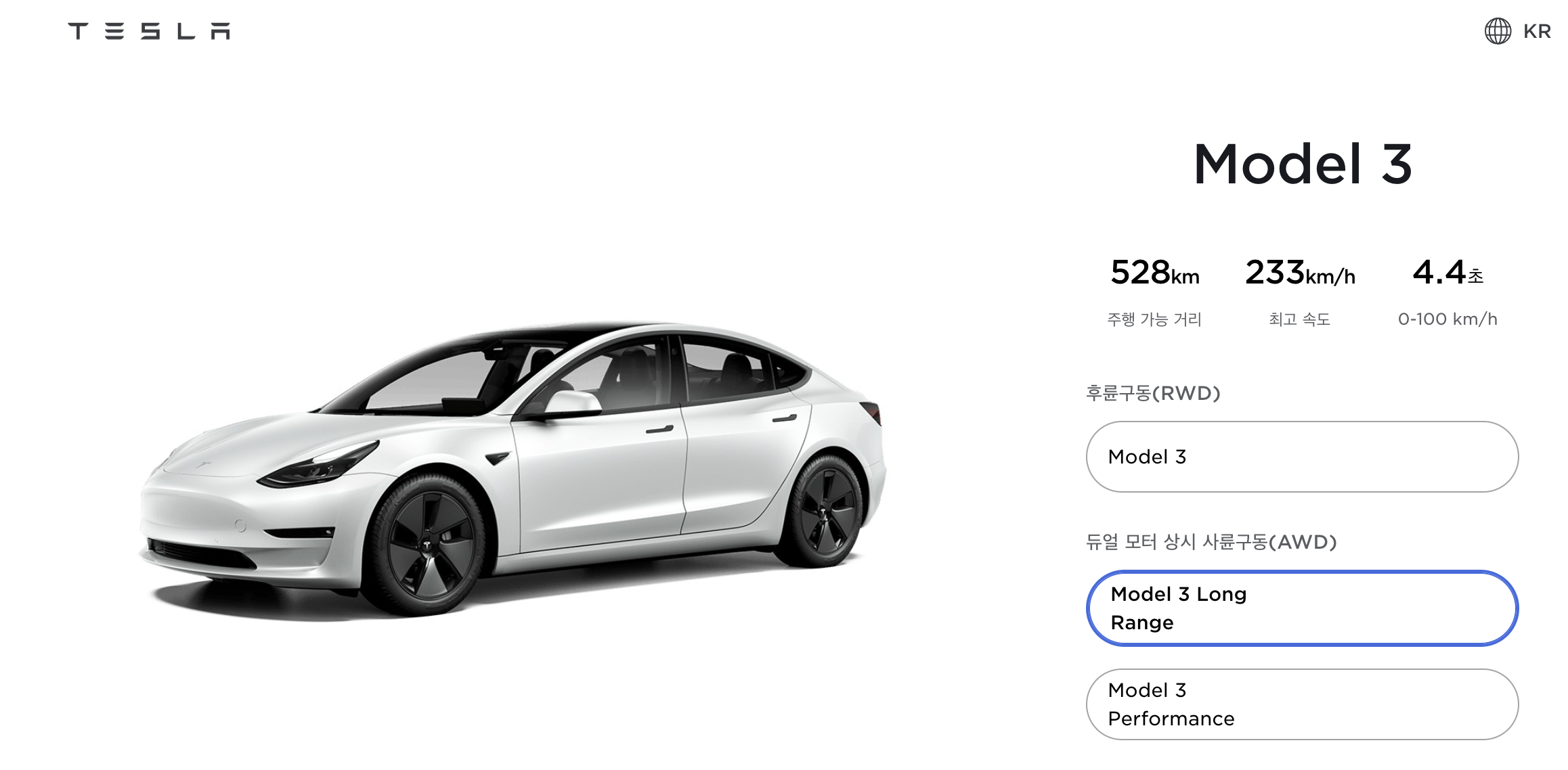 모델 3는 스탠다드(후륜구동) , 롱레인지, 퍼포먼스 이렇게 3개의 트림이 있습니다.