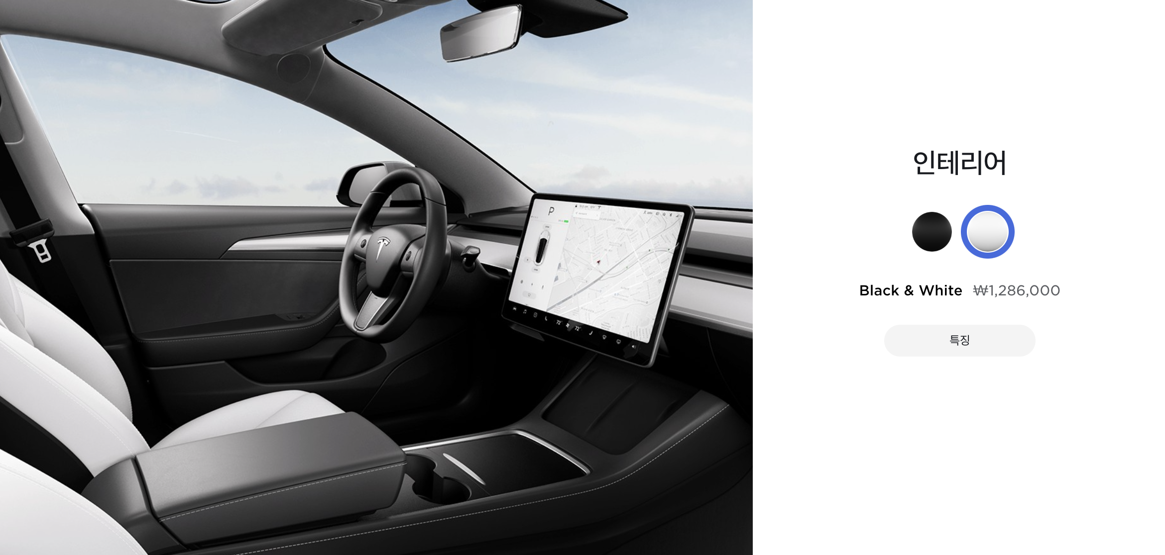 인테리어는 기본 검은색과 흰색으로 선택 옵션 2개만 있습니다.