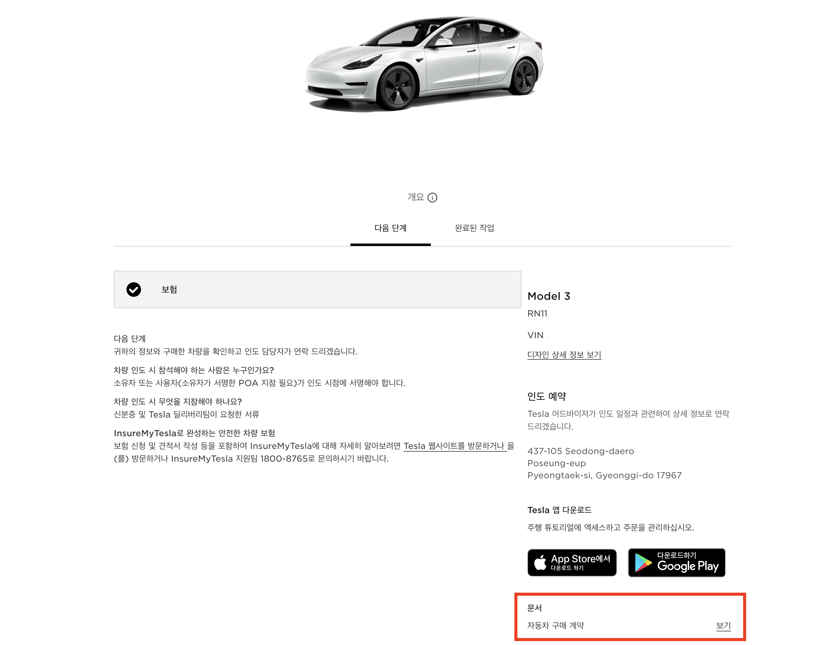 차량 구매 계약서는 테슬라 홈페이지에서 여러분이 출력하셔야 합니다.