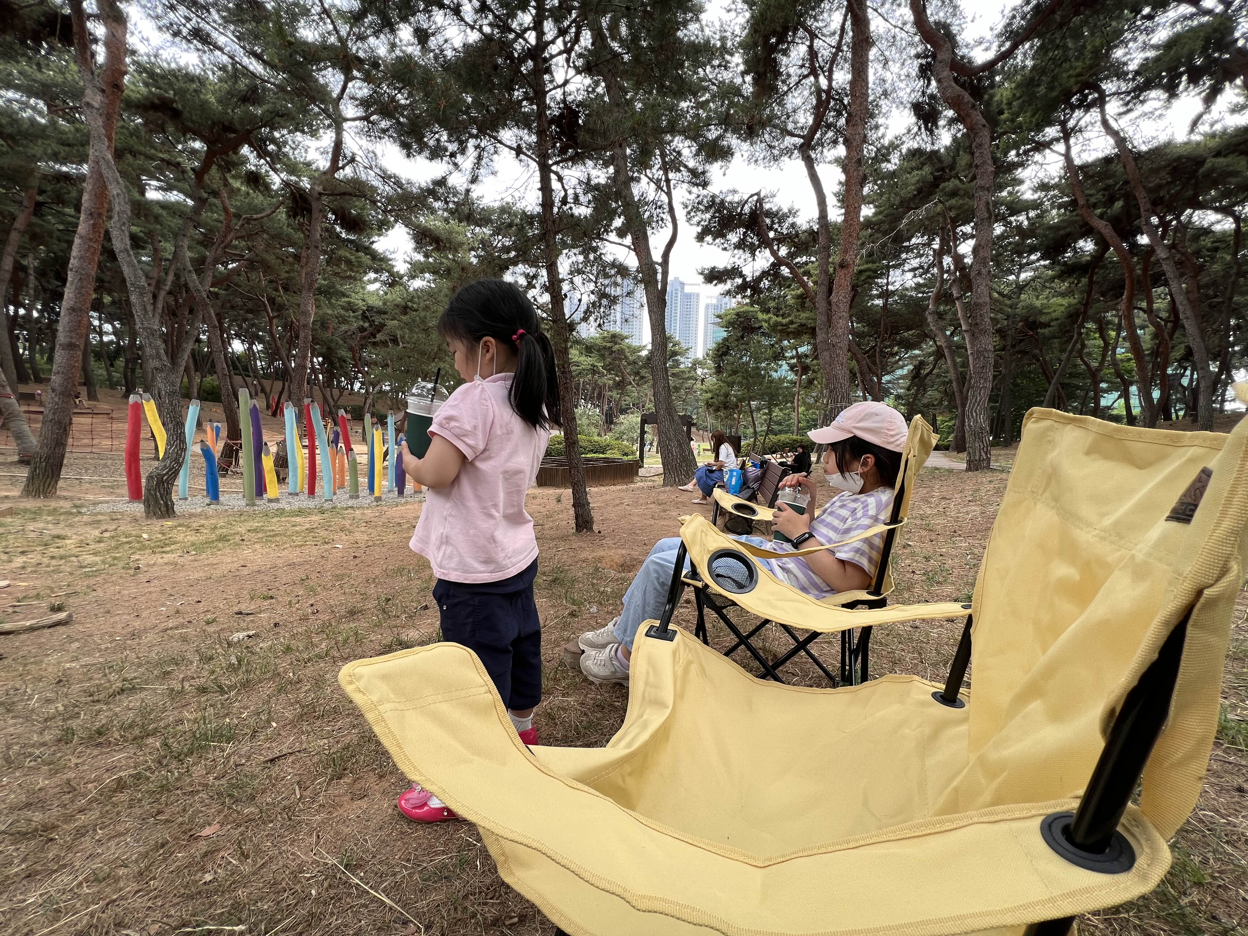 캠핑 의자랑 원터치 팝업 텐트 사고 일단 한 번 나가보자 생각해서 집 근처 공원으로 왔습니다.