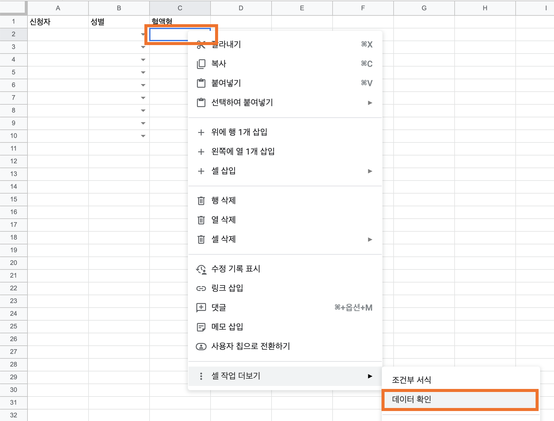 구글 스프레드시트 드롭다운 목록 만들기