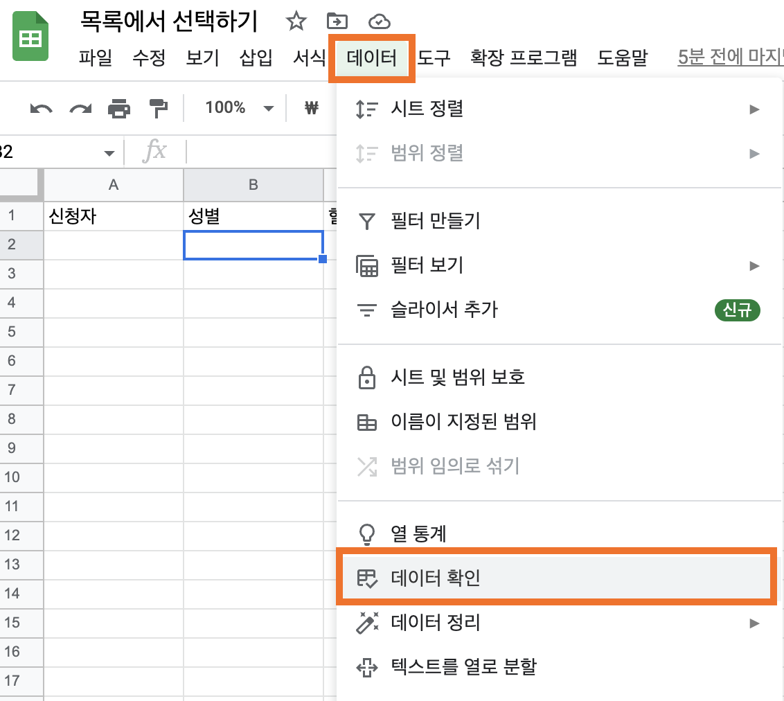 구글 스프레드시트 드롭다운 목록 만들기