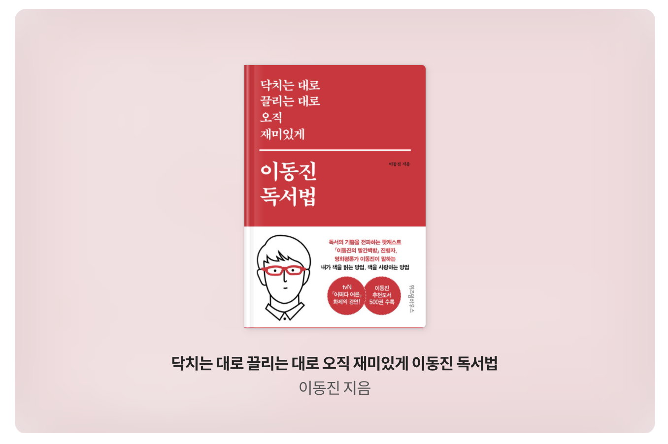 책을 읽기로 결심했다. 그런데 이 수많은 책들 중에 무엇을 읽지? 독서라고 하는 단순한 행위에 큰 의미를 부여해주는 책들을 찾아본다. 그 중에서 빨간 안경테를 두른 빨간 바탕의 강렬한 표지인 이 책을 기쁜 마음으로 발견하게 되었다.