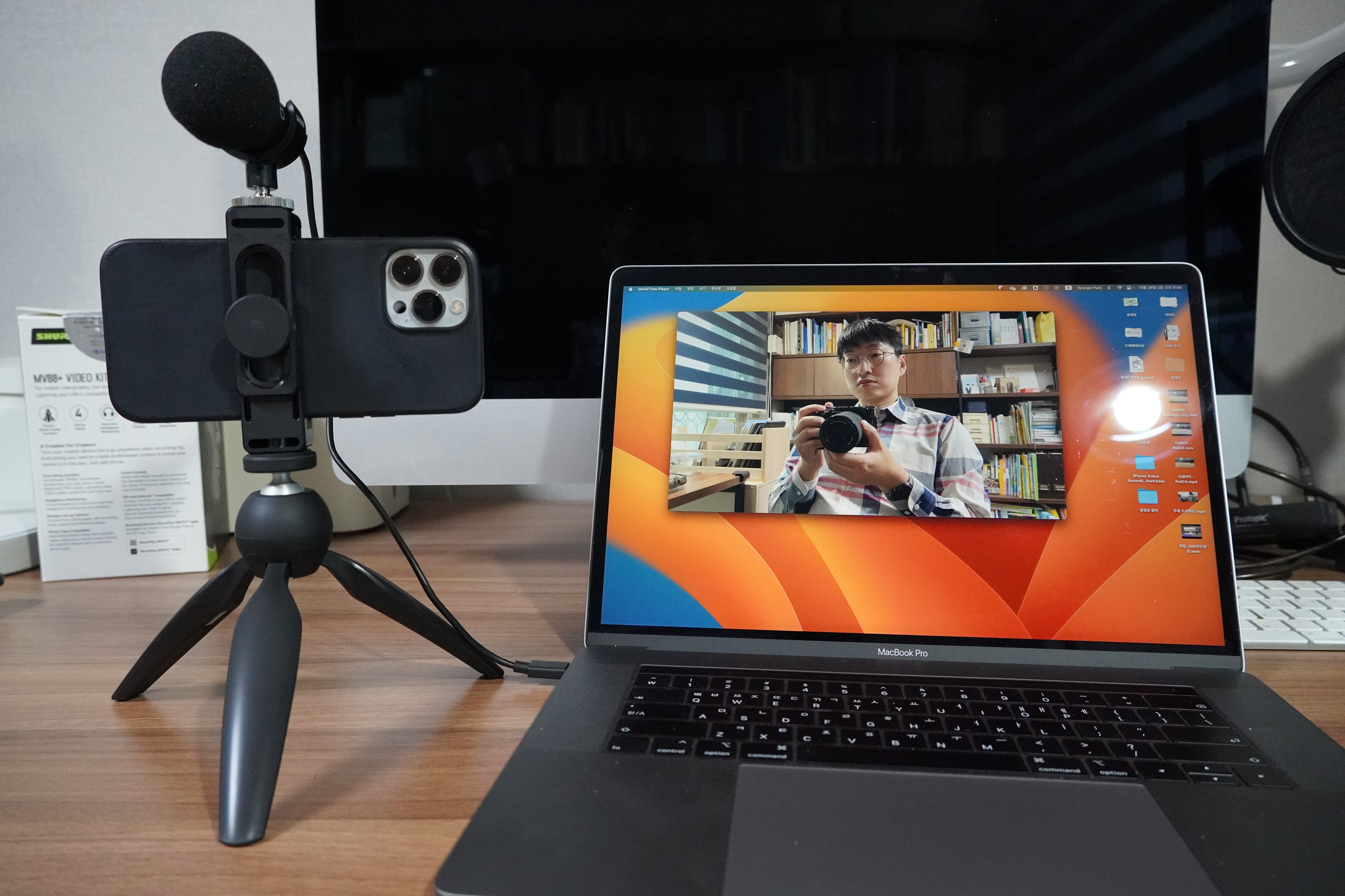 특히 iOS16 과 최신 맥OS Ventura 환경에서는 아이폰을 무선으로 웹캠처럼 인식하여 사용할 수 있기 때문에