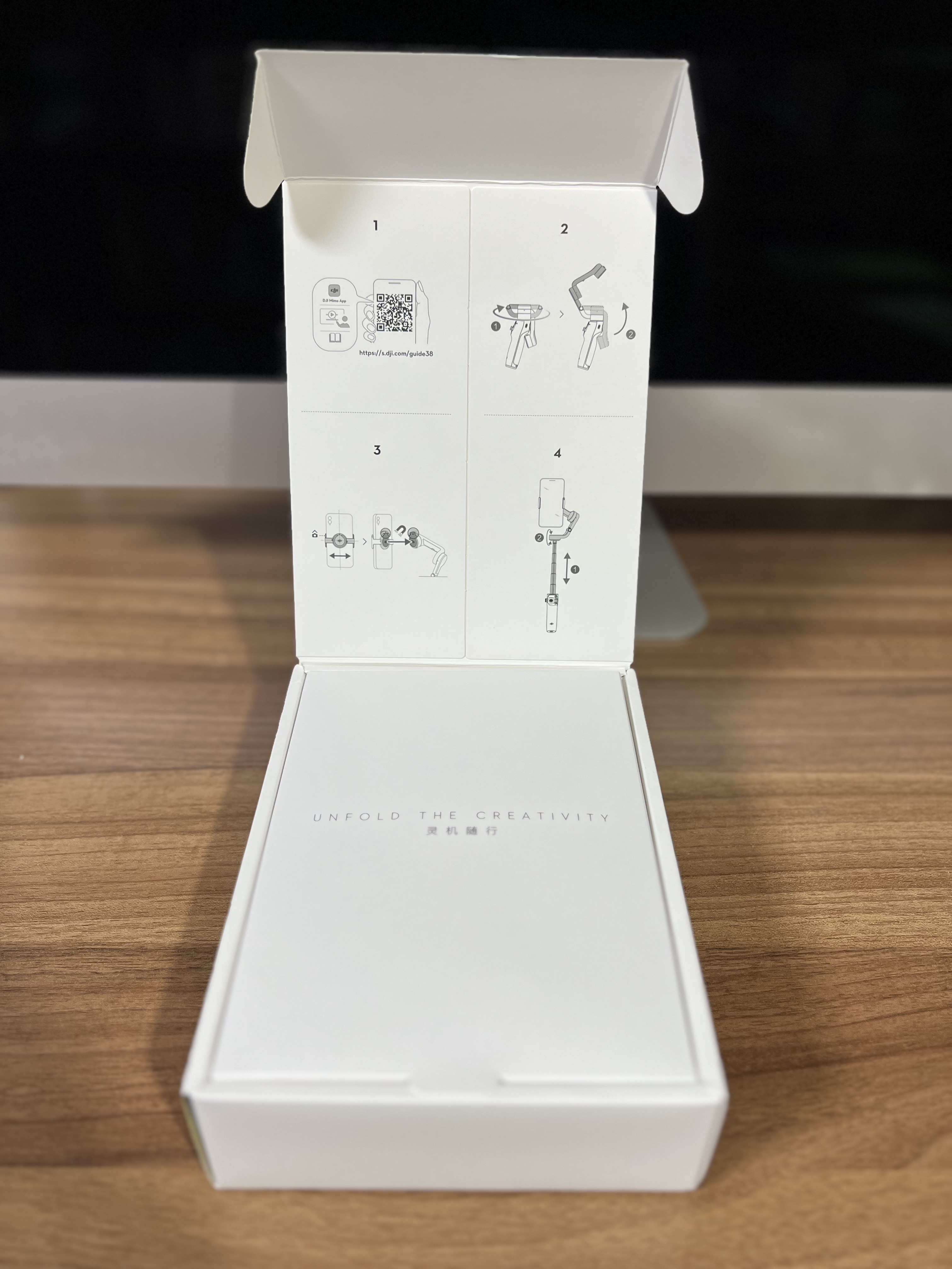 DJI 오즈모 모바일 6는 비닐 제거 후에 OPEN 스티커를 뜯어야 하는 차이가 있습니다.
