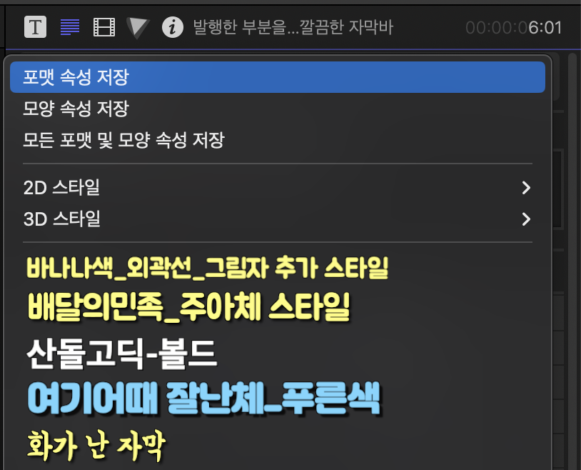 파이널컷프로 자막 프리셋 스타일 관리하기