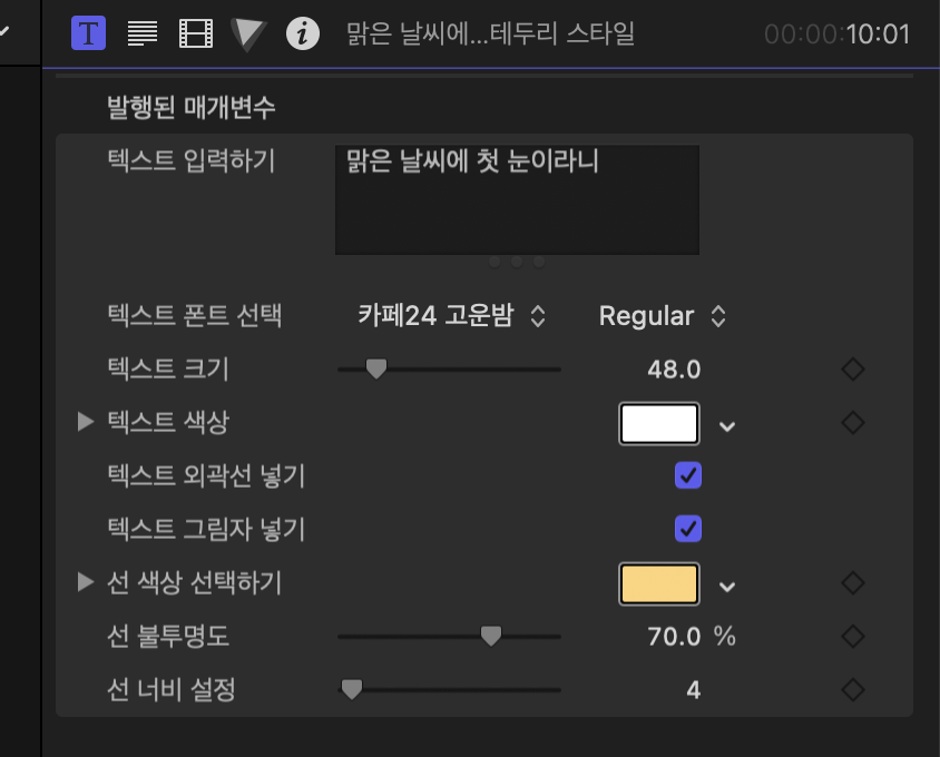 파이널컷프로 반응형 자막 위아래 테두리 스타일