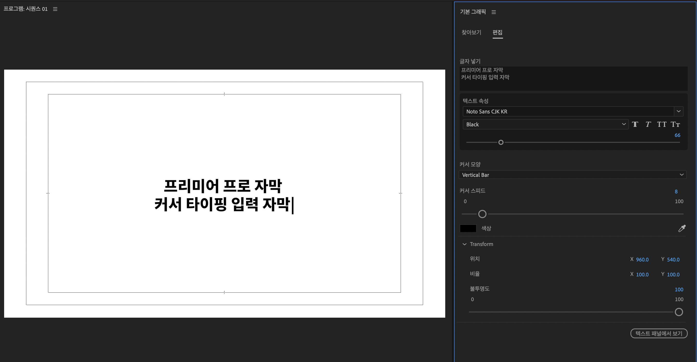 프리미어 프로 자막 mogrt 템플릿 커서 타이핑 입력 자막