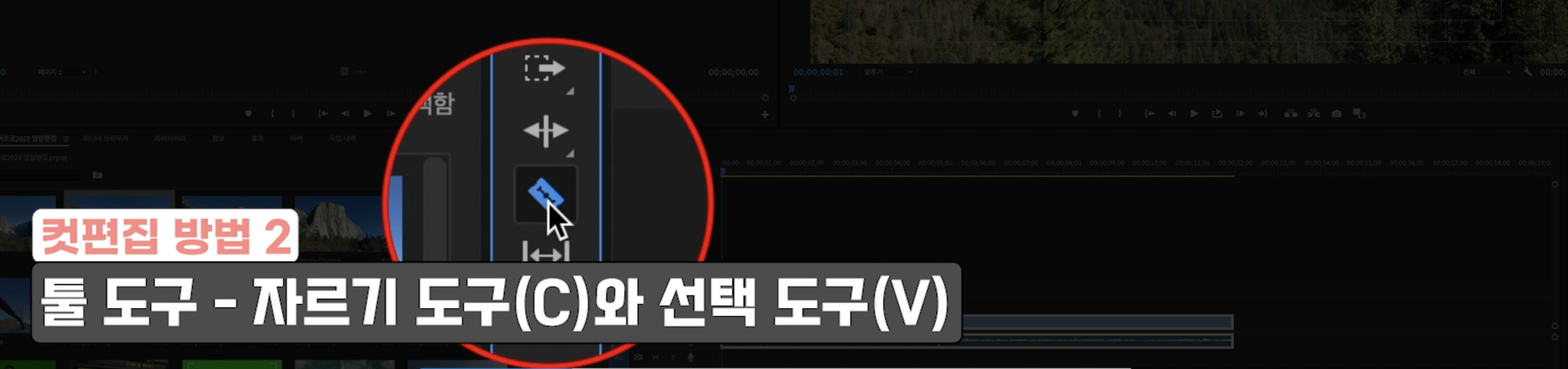 2. 자르기 도구(C) - 선택 도구(V)를 이용한 컷편집