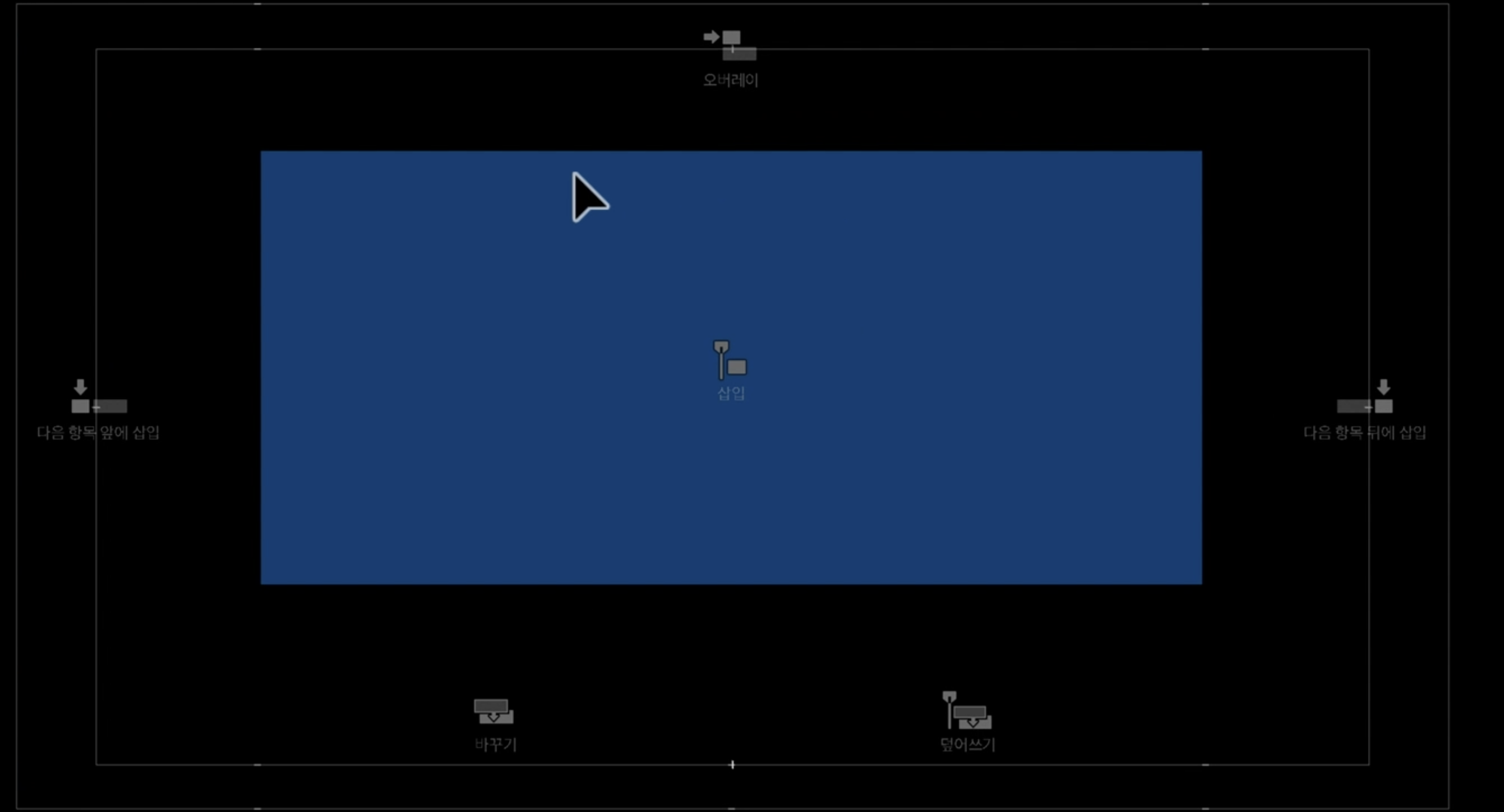 다음 항목 앞에 삽입, 삽입, 다음 항목 뒤에 삽입, 오버레이, 바꾸기, 덮어쓰기 등을 사용할 수 있습니다.