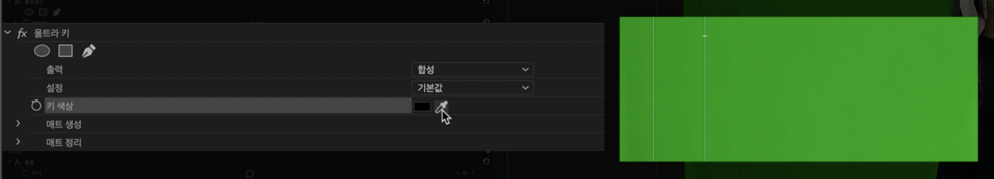 [효과 컨트롤]에 가셔서 울트라키의 '키 색상' 부분을 녹색으로 설정합니다.