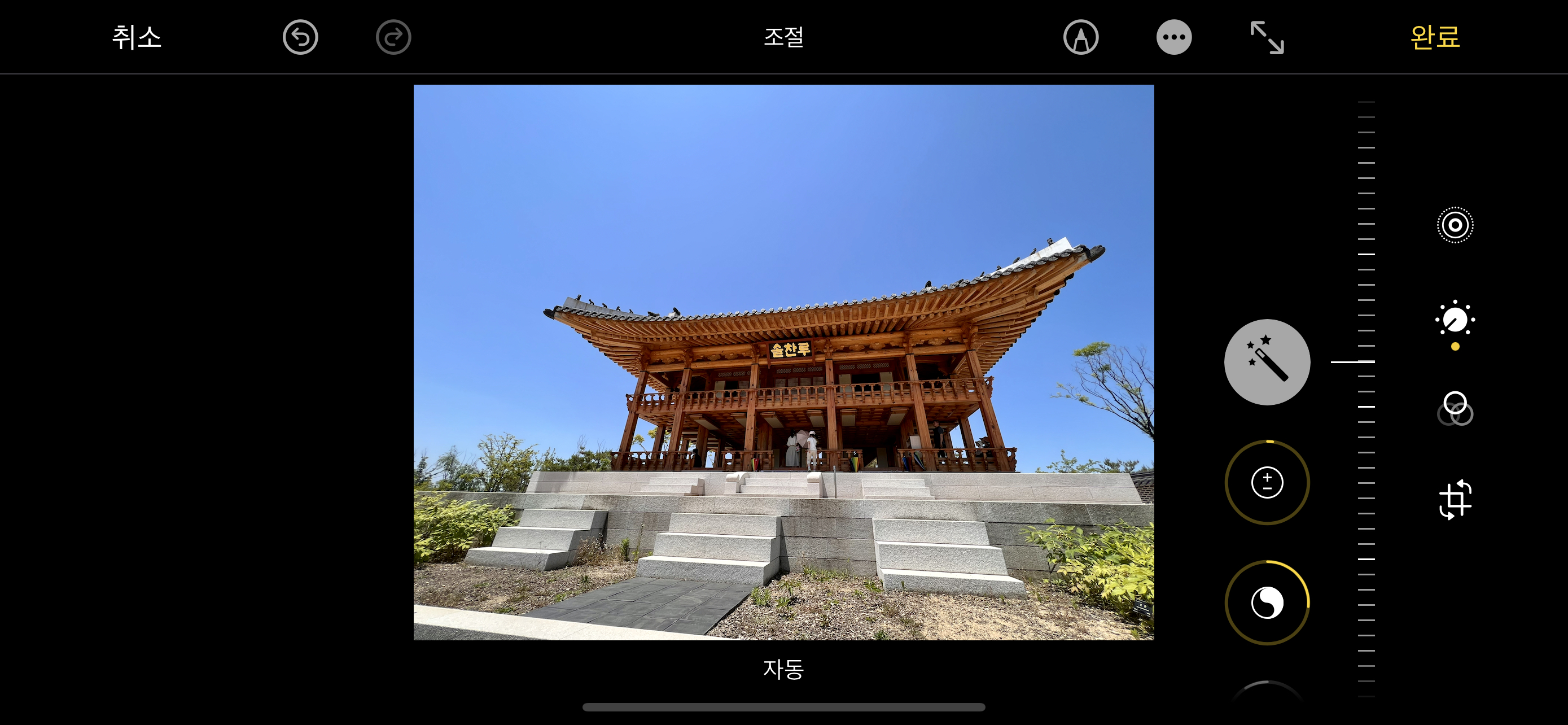 이를 위해서는, 사진을 선택한 후 오른쪽 상단에 있는 '편집' 버튼을 눌러주시면 됩니다. 그리고, 원하는 편집 기능을 선택하여 조절하시면 됩니다.