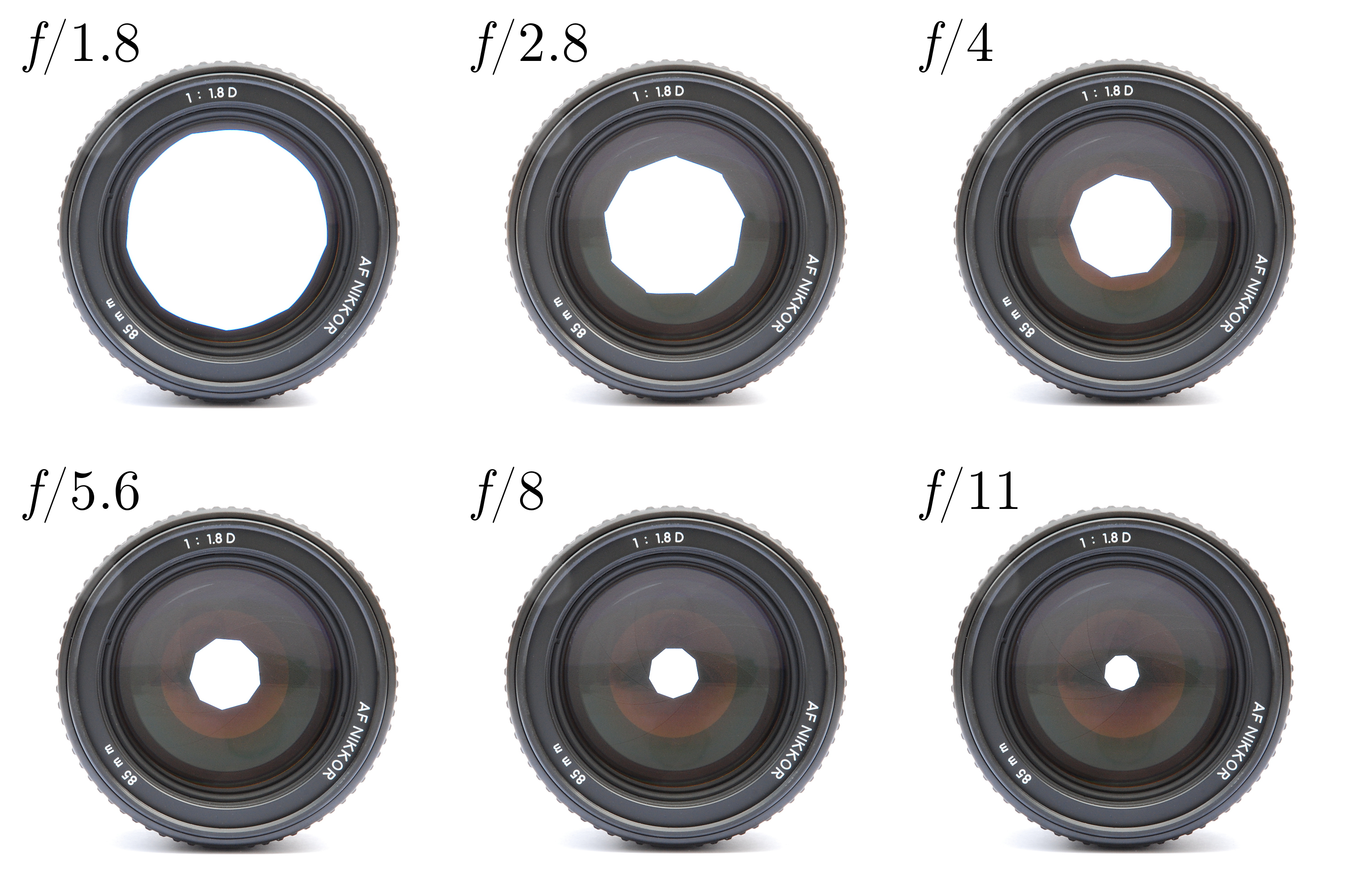 조리개 값, 즉 f값은 렌즈의 초점 거리를 렌즈의 구경으로 나눈 비율로 결정합니다.