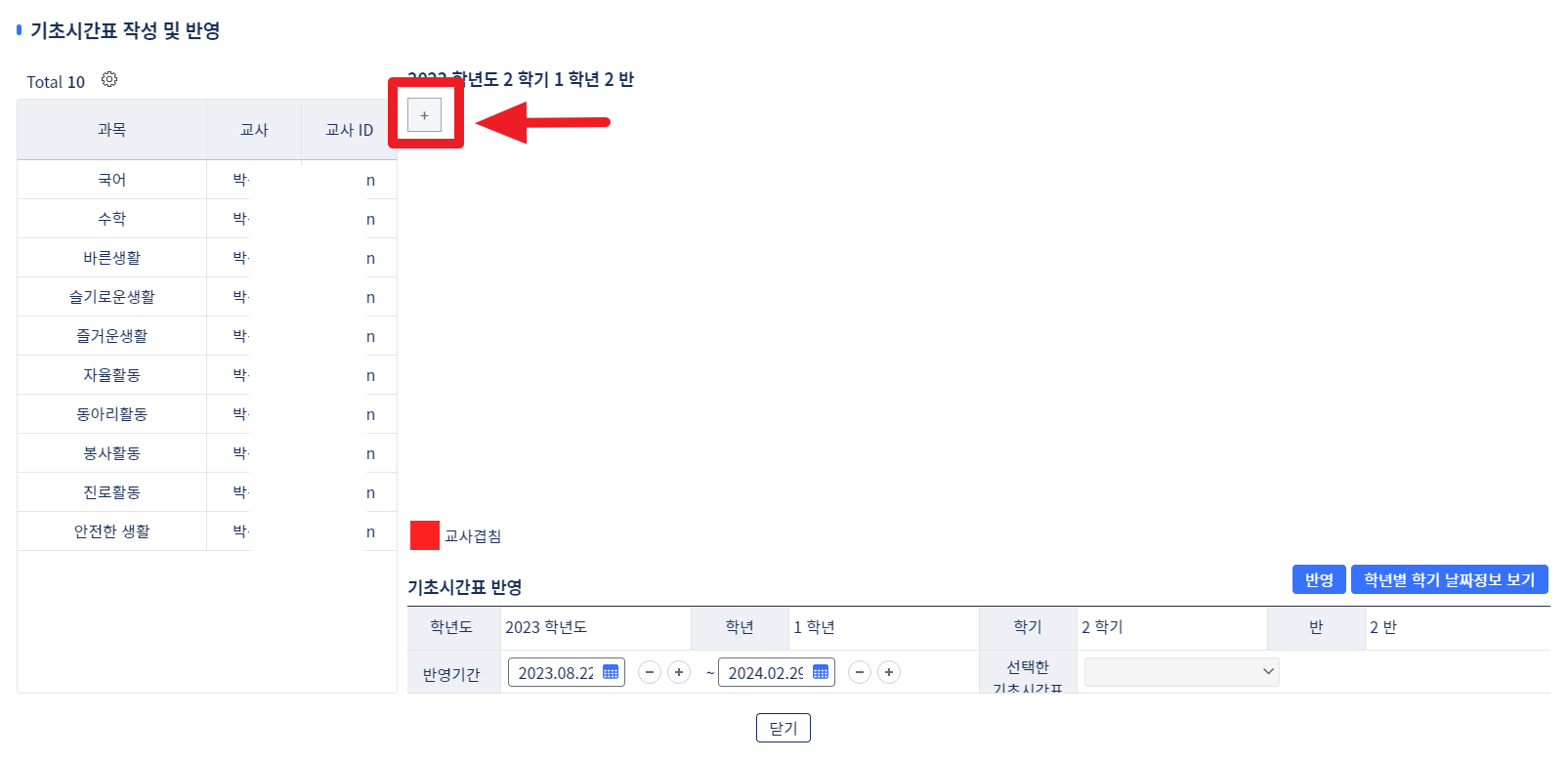 마지막으로, [반영] 버튼을 클릭해야만 2학기 시간표가 반영됩니다. 이 단계를 잊지 말아야 학생들의 출결 및 보결 관리가 정확하게 이루어집니다.