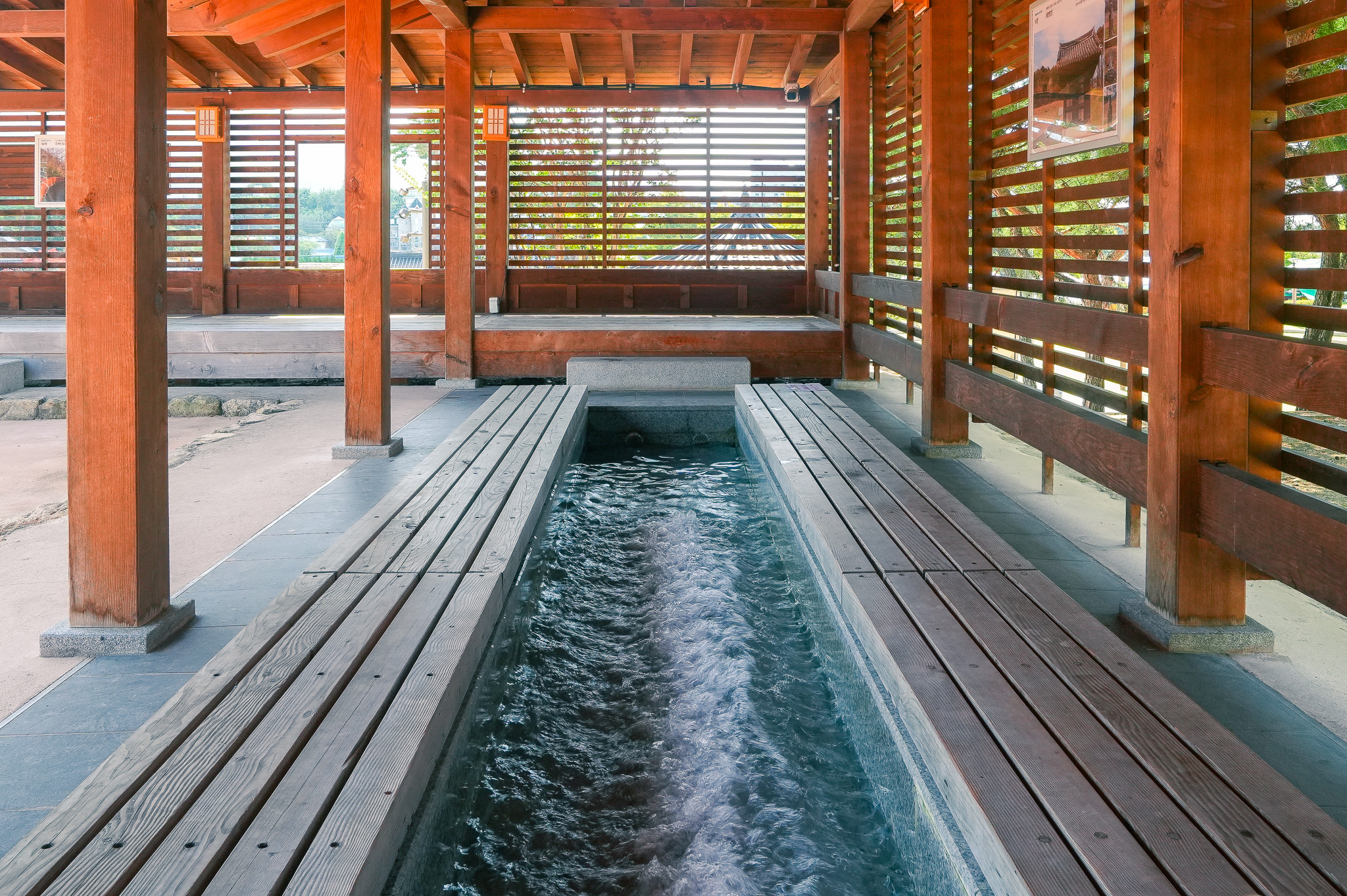 이곳에는 발을 담구고 초정의 시원한 물로 족욕 체험을 할 수 있는 곳이 있습니다.