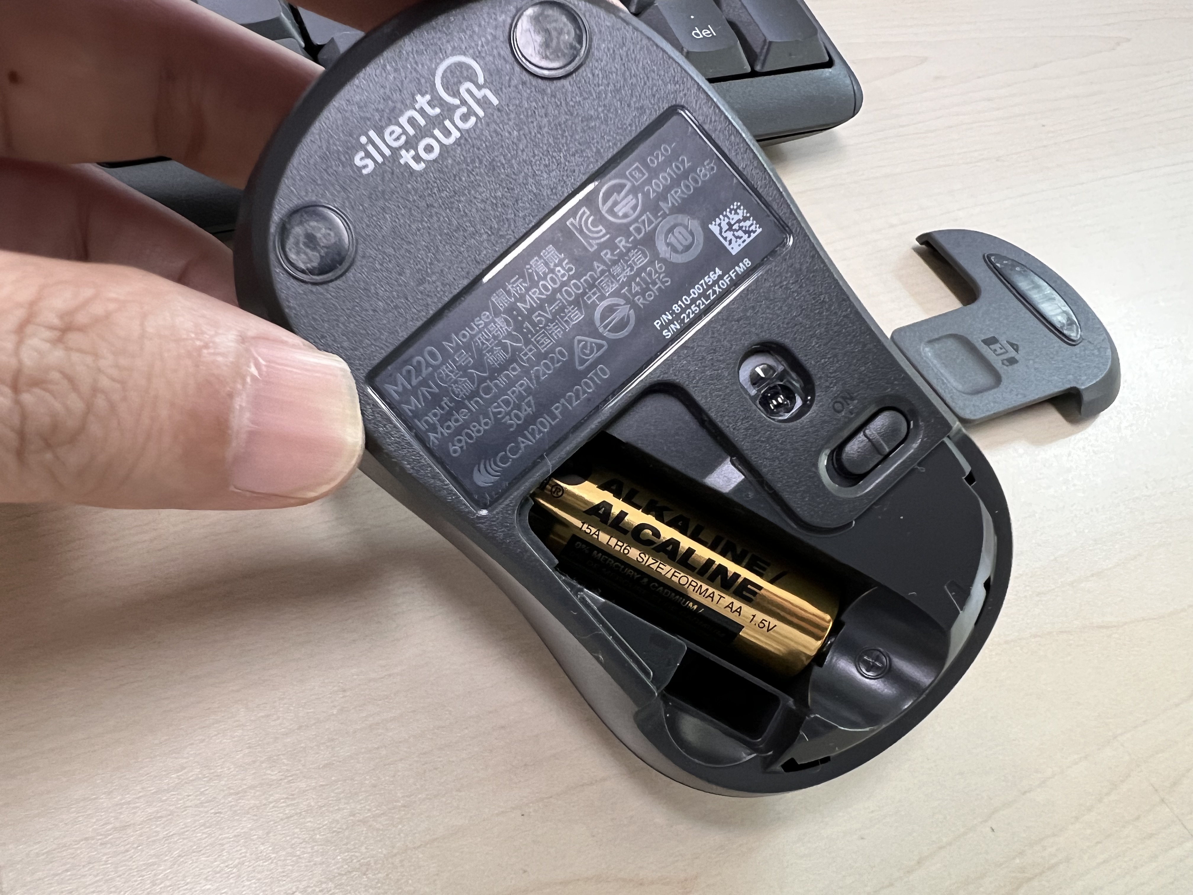 MK295 키보드에는 AAA 건전지 2개가 들어갑니다.